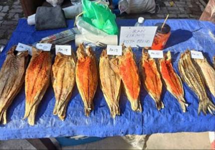 - Mereka menawarkan pelbagai jenis ikan kering, ikan masin, dan produk laut lain.