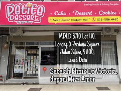 Petite Dessert Baking Studio & Baking Supplies Perdana Square, MDLD 8710 Lot 110, Lorong 5, Jalan Silam, 91100 Lahad Datu, Sabah, Malaysia